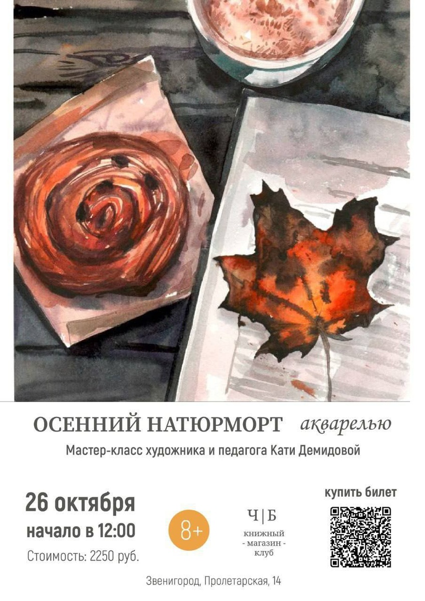 26 октября с 12:00 до 14:00 участники будут рисовать уютный осенний натюрморт акварелью.