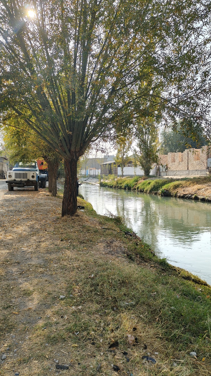 Сначала наш водитель Ёдгор завёз нас к себе и показал, где он живёт. Это старая Фергана. Мы увидели, как живут тут люди. Словно не город, а где-то в кишлаке. Рядом река ( тот самый канал, о котором я говорила), но тут берега не все в бетон закатаны.