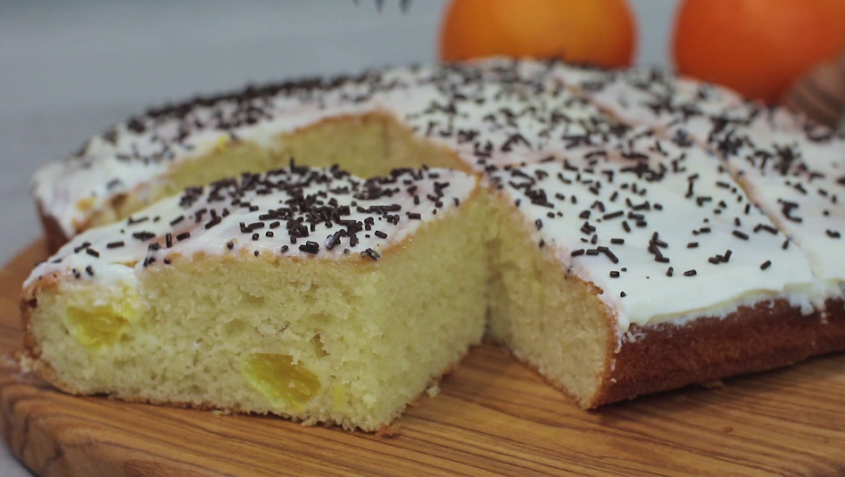 Всем привет! Выходные самое время побаловать родных вкусной домашней выпечкой. Я решила приготовить сегодня очень вкусный и простой пирог с апельсинами. Осенью отличный вариант для семейного чаепития. Рецепт пирога с апельсинами очень простой и не требует много времени. Яйца - 3 шт Сахар - 100-120 г Мука - 160 г Сливочное масло - 80 г (мягкое) Кефир - 50 мл. Разрыхлитель - 1,5 Апельсин 1-2 шт Крем: Сметана - 100 г Сахар - 2 ст.л (сгущенка) Подготавливаем продукты по списку для пирога и начнем готовить. Для теста возьмем 80 г мягкого сливочного масла, заранее достаньте его из холодильника. К маслу добавляем 100-120 г сахара и взбиваем все миксером около 3-4 минут. К взбитому маслу добавляем 3 яйца и еще раз все хорошо взбить миксером. Далее вливаем 50 мл кефира и продолжаем взбивать. Теперь очередь сухих ингредиентов: 160 г муки, 1,5 ч.л разрыхлителя и щепотка соли. Взбиваем тесто на самых маленьких оборотах миксера. Тесто должно стать однородным без комочков. Тесто выливаем в форму (у