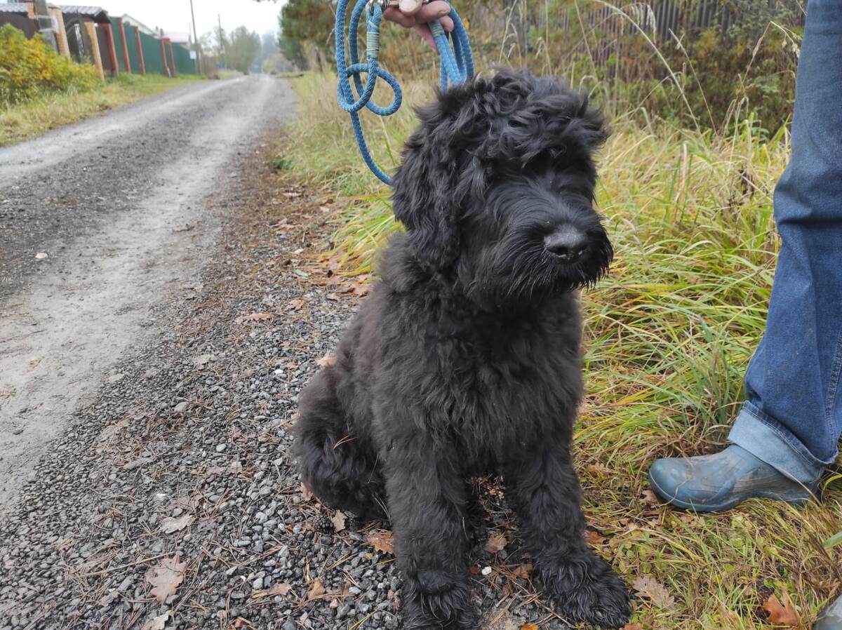 Весь последующий день я думала. Думала, думала... И вчера с утра взяла и написала заводчице чёрных русских терьеров, с которой познакомилась на одном из мероприятий. Писала честно, что так и так, денег у меня немного, я знаю, сколько стоят щенки, но ведь бывают всякие браки породы, может, какие-то отказники и ещё что-то. Мы так маме кошку подарили — две счастливые души прожили вместе больше двадцати лет! И вы знаете, человек меня понял. Уже через минут пятнадцать я писала другой заводчице про щенка. Ему четыре месяца, родители — чемпионы всего, чего только можно. Маму зовут Бриенна Тарт, а милый настолько фанат игры престолов, что у него на правой груди герб Старков, а на левой — Таргаринов. Костяк старого образца, мама легко кладёт лапы на плечи человеку моего роста, а папа тоже зверь мощнейший. И самое главное, что у собаки хвост. Обычно таким породам хвосты купируют ещё в самом младенчестве, но так вышло, что у Любомира, который остался на Урале за 1500 км, как раз-таки есть хвост! Ну представьте! Да, у щенка есть некоторый брак, он не годится для выставок- но мне вообще без разницы, даже если бы я хотела, куда ж еще выставки прибавить!