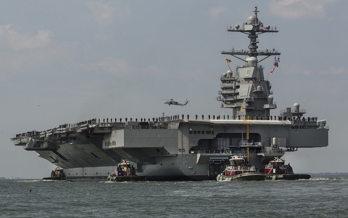 Его палубное авиакрыло представлено 90 единицами тактической авиации, включая самолёты ДРЛОиУ E-2D Advanced Hawkeye (радары кругового обзора которых AN/APY-9 способны обнаруживать венесуэльские Су-30МК2V на фоне земной поверхности на удалении 270 - 350 км и на фоне воздушного пространства - до 470 - 500 км), а также до 2 полков палубных истребителей F/A-18E/F Super Hornet.