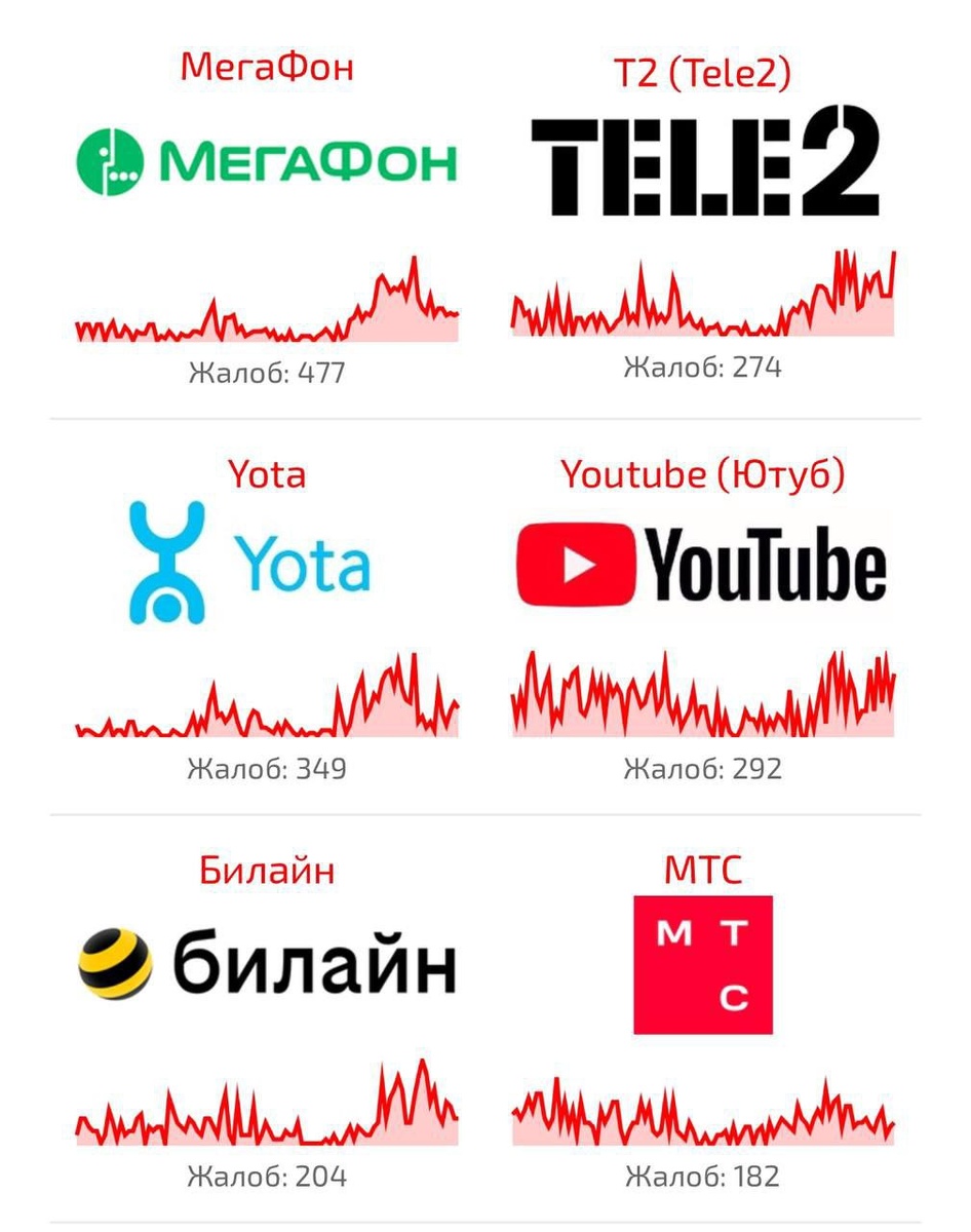 По данным сервисов мониторинга, неполадки затрагивают всех основных операторов.