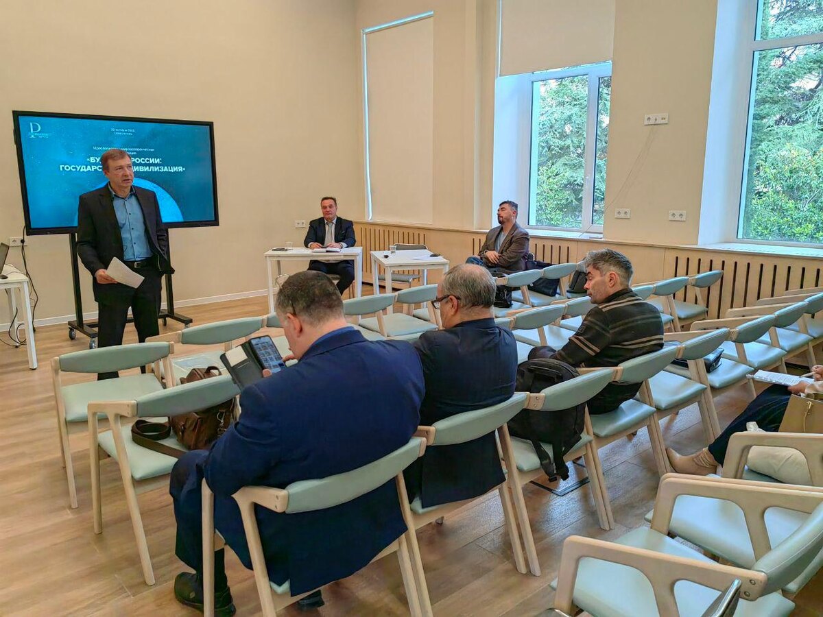 22 октября 2025 года на площадке «Точка кипения» Севастопольского государственного университета Движение «Русская Мечта» провело форум «Будущее России: государство и цивилизация». Мероприятие продолжило одноимённый цикл региональных конференций, прошедших в Москве, Санкт-Петербурге и Волгограде. Вступительное слово произнёс координатор Экспертного совета Движения Сергей Баранов, который также зачитал первый доклад Форума. На мероприятии состоялись выступления профессора кафедры глобалистики МГУ им. М.В. Ломоносова Сергея Малкова, декана факультета истории, политологии и права Государственного университета просвещения Вардана Багдасаряна (в записи), профессора кафедры философии Крымского федерального университета им. В.И. Вернадского Дмитрия Гарбузова, доцента Финансового университета при Правительстве РФ Владимира Блинова, заведующего кафедрой философии КФУ им. В.И. Вернадского Олега Шевченко, руководителя Научно методического центра патриотического воспитания и молодежной политики Фи