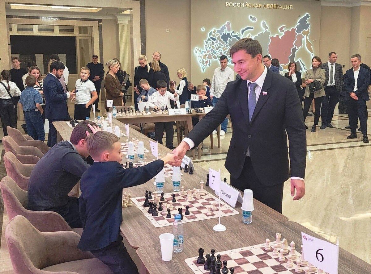 Наш второклассник поучаствовал в шахматном турнире с гроссмейстером Сергеем Карякиным ♟️ В среду, 22 октября, в Совете Федерации прошёл шахматный турнир в формате одновременной игры с чемпионом мира, гроссмейстером Сергеем Карякиным. Одним из участников спортивного поединка стал Тимофей из 2 «Е». ℹ️ Тимофей занимается шахматами с пяти лет. Изначально его тренировал отец, а в первом классе мальчик записался в шахматный кружок под руководством нашего учителя Елизаветы Александровны Филипповой. 🗣️ «Настоящая победа — это выйти на игру с заведомо сильным противником и оказаться готовым учиться на своих ошибках. В шахматном поединке встречаются не столько соперники, сколько участники команды, которая совместными усилиями создаёт красивую партию», — говорит Елизавета Александровна. Сергей Карякин играл одновременно с 14 участниками. Тимофей оказался одним из шести шахматистов, которые получили подарок за проведённую партию. #ДОНМ #ТалантливыеДетиМосквы