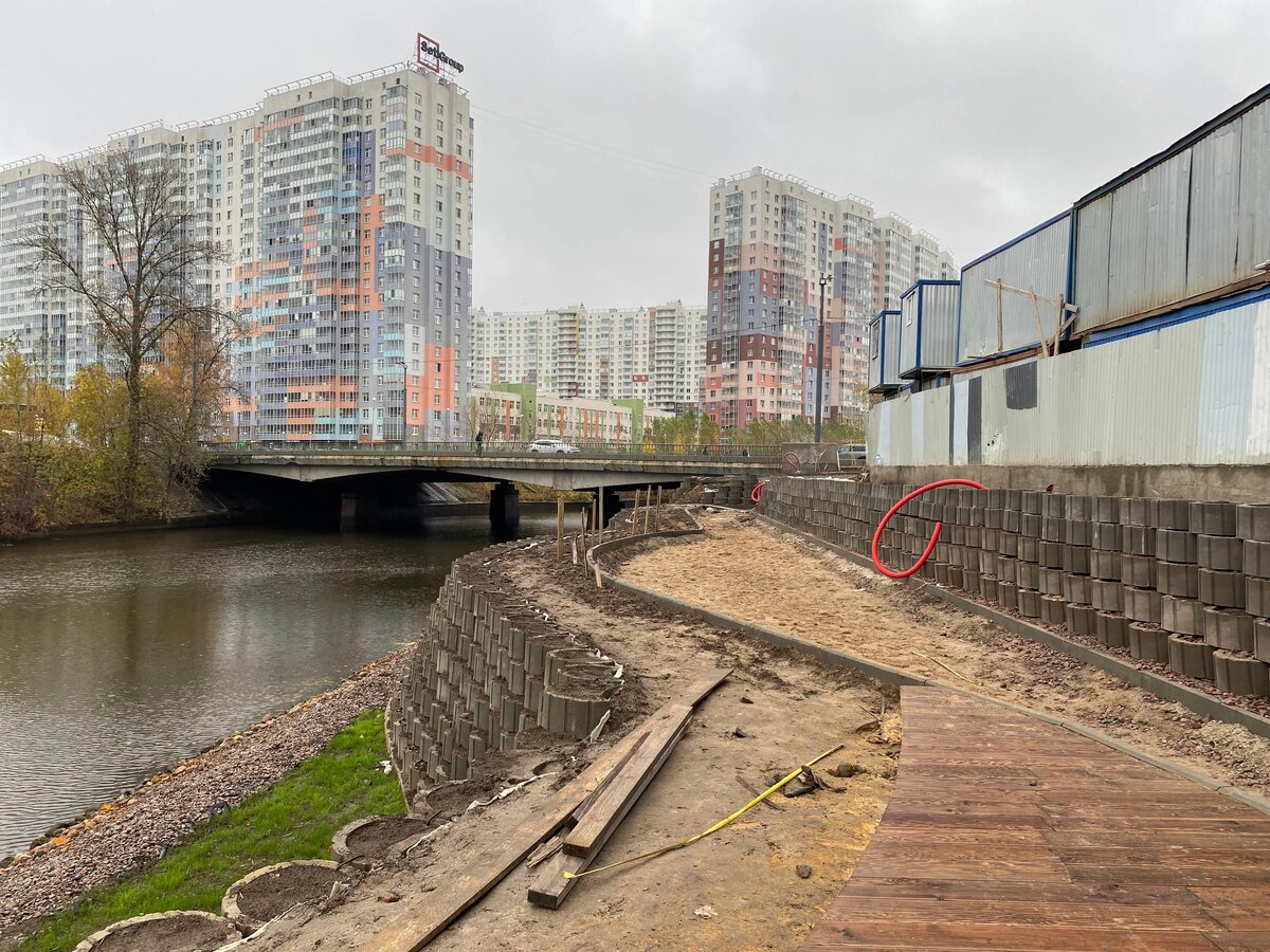 Ниже по течению начинается реализация масштабного проекта. На первом этапе здесь появится современная двухуровневая пешеходная дорожка с живописными видами на воду. В перспективе набережную продлят до музейного комплекса «Уткина дача», создав единый маршрут с парком «Охта – Оккервиль».