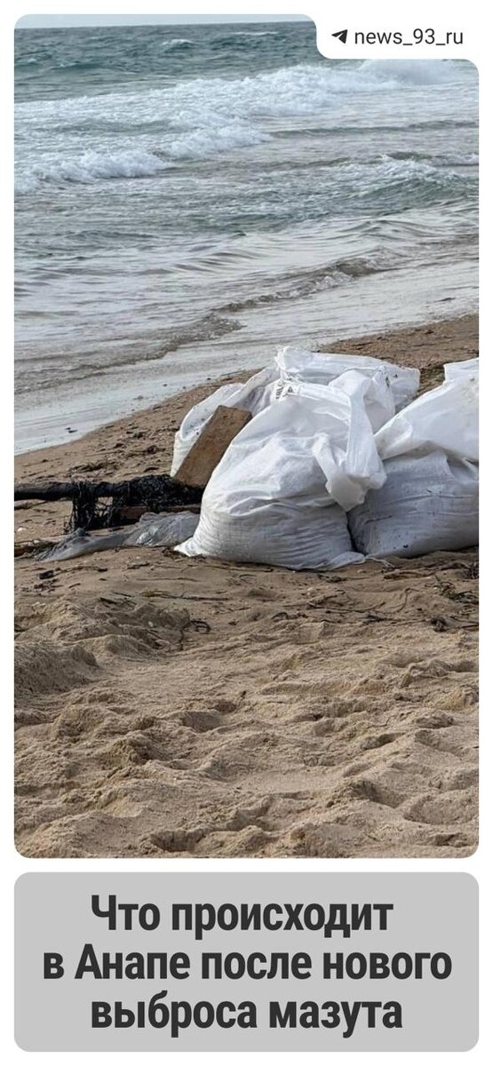 Что происходит в Анапе после нового выброса мазута? Накануне губернатор Краснодарского края Кондратьев сказал, что на Анапу движется 900 тонн мазута. Накануне наши коллеги из @news_93_ru поехали туда, чтобы посмотреть, как на берегу моря обстоят дела ⬆️