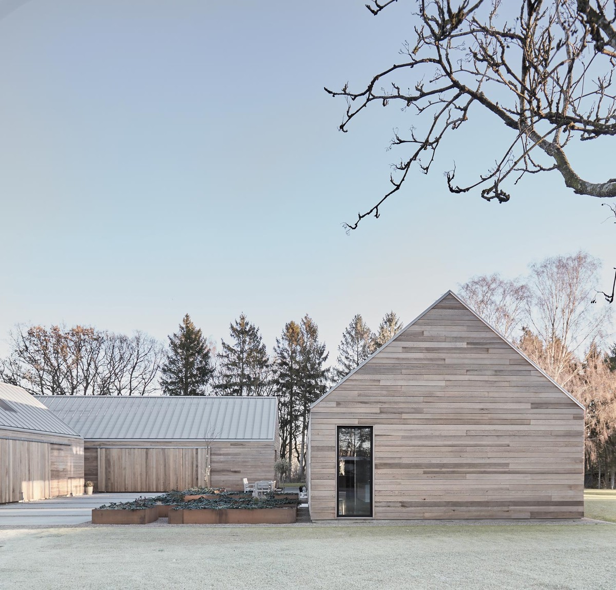 Сегодняшнее путешествие предлагает нам познакомиться с чем-то необычным — современным фермерским домом, расположенным в сельской местности Ютландии. Этот проект, названный «Казари» (Casa Ry), получил свое имя от окружающей его местности. Архитекторами, стоящими за этим великолепным строением, являются Кристоферсен и Вейлинг (Christopherson and Weiling), которых также упоминают как Густавуса и Вейлина. Архитектурная Идентичность и Экстерьер Усадьба «Казари» представляет собой современную интерпретацию классического старого фермерского дома. Его планировка состоит из трех объемов с двускатными крышами, что напоминает традиционный рисунок, который ребенок мог бы нарисовать. Традиционно для региональных фермерских домов характерно наличие внутреннего двора, но здесь эта концепция представлена в современном прочтении. Внешний вид здания отличается тщательным вниманием к архитектурной эстетике. Чтобы ничто не нарушало внешний вид, водосточные трубы скрыты во всех трех объемах. Подъезд