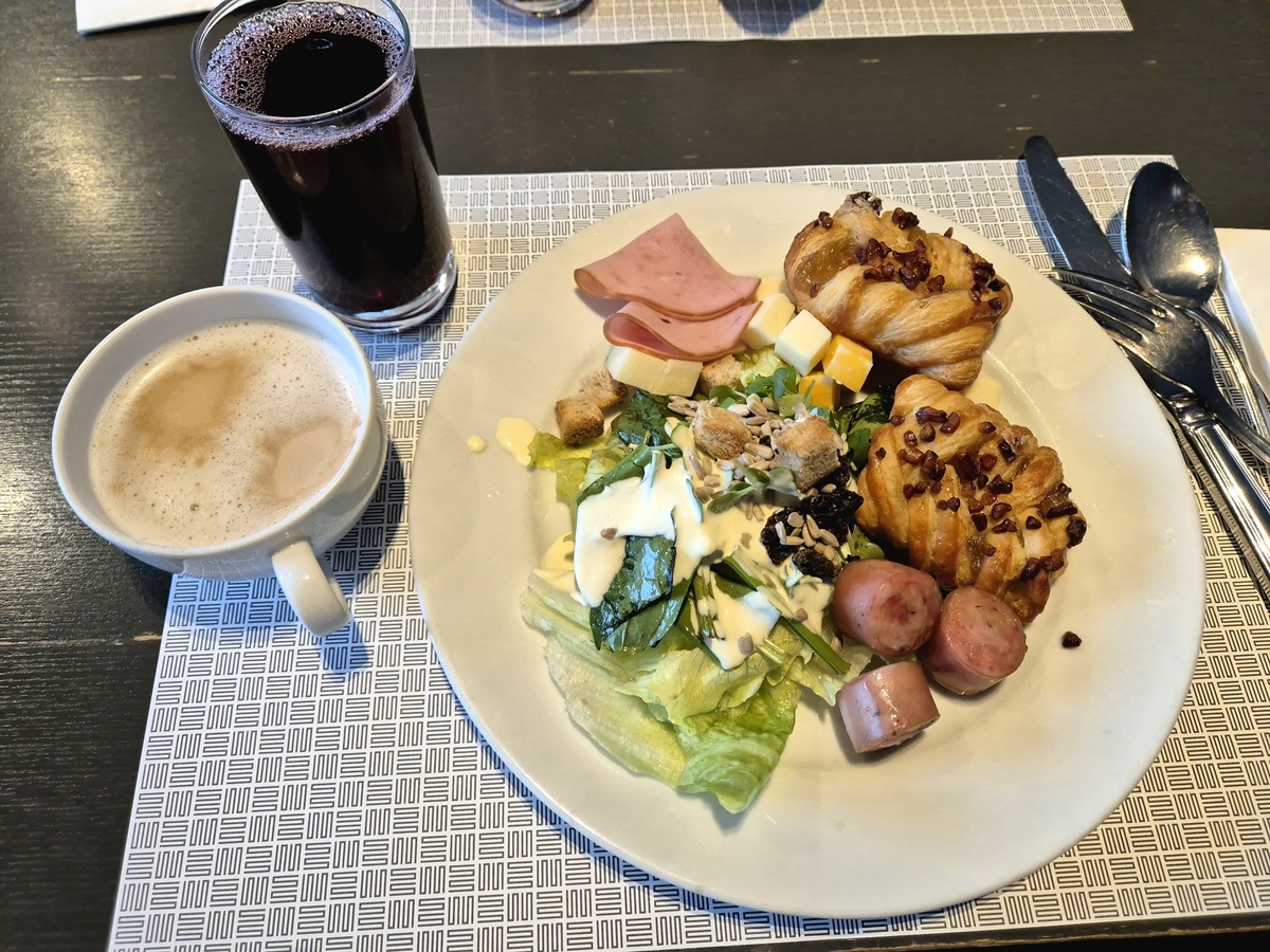 Финальную часть буфета занимала выпечка — хрустящие датские слойки, булочки с изюмом, мини-круассаны и тарталетки с заварным кремом. Все выглядело свежим и аккуратным, без лишнего блеска, но с тем самым запахом масла и теста, который сразу делает утро уютнее.