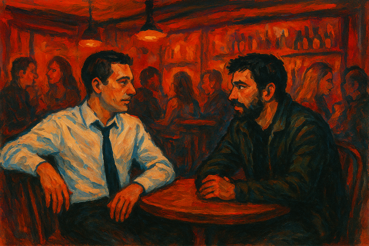 Мы отправились в бар. Я никогда не был в баре, ведь бар это место, где упиваются ядом и вырывают из себя душу и показывают натуральность своей природы. Люди, они приходят из-за проблем, пытаясь найти поддержку в нетрезвом состоянии, или найти себе своего психолога.