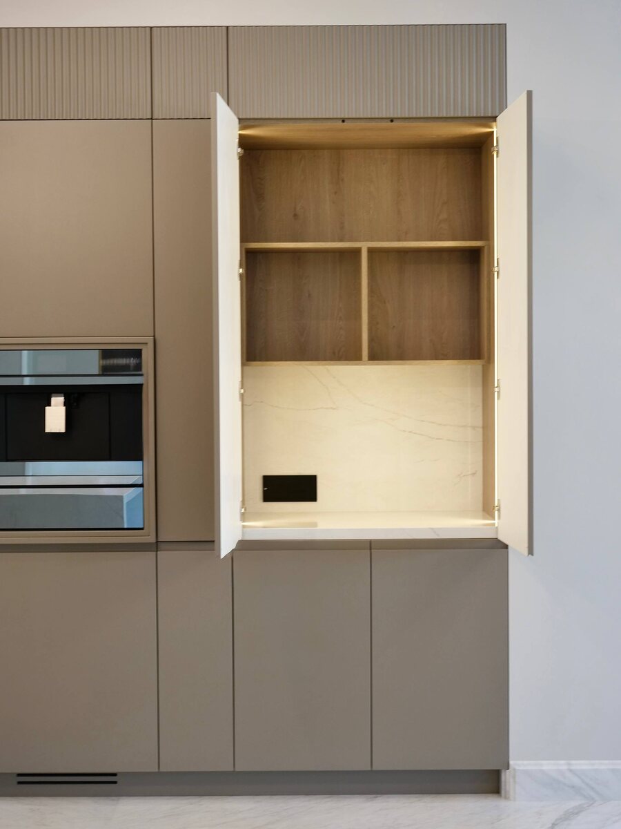 ⭐️ MebeLi-TO, когда внутреннее содержание столь же совершенное, как и форма. 📷 Выдвижные колонны обеспечивают лёгкий доступ к содержимому, внутренние ящики формируют чёткую систему хранения, а мягкая подсветка подчеркивает структуру и глубину материалов. 📷 Пространство выстроено логично - движения становятся естественными, а каждая зона работает интуитивно. 📷 Система открытых и закрытых секций, скрытые розетки, встроенные направляющие и отделка ящиков натуральным деревом создают ощущение инженерной точности и архитектурной чистоты. ✎ Напишите нам - обсудим детали вашей будущей кухни. ___________ 📁Получить проект и расчёт 👤Записаться в шоурум 👤Узнать об условиях сотрудничества с дизайнерами