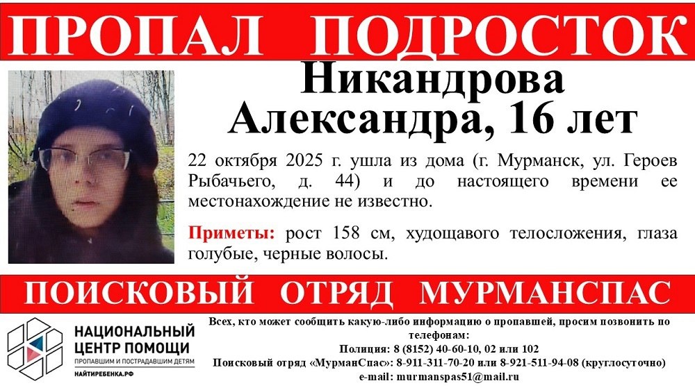 ◼️В Мурманске пропала 16-летняя девушка