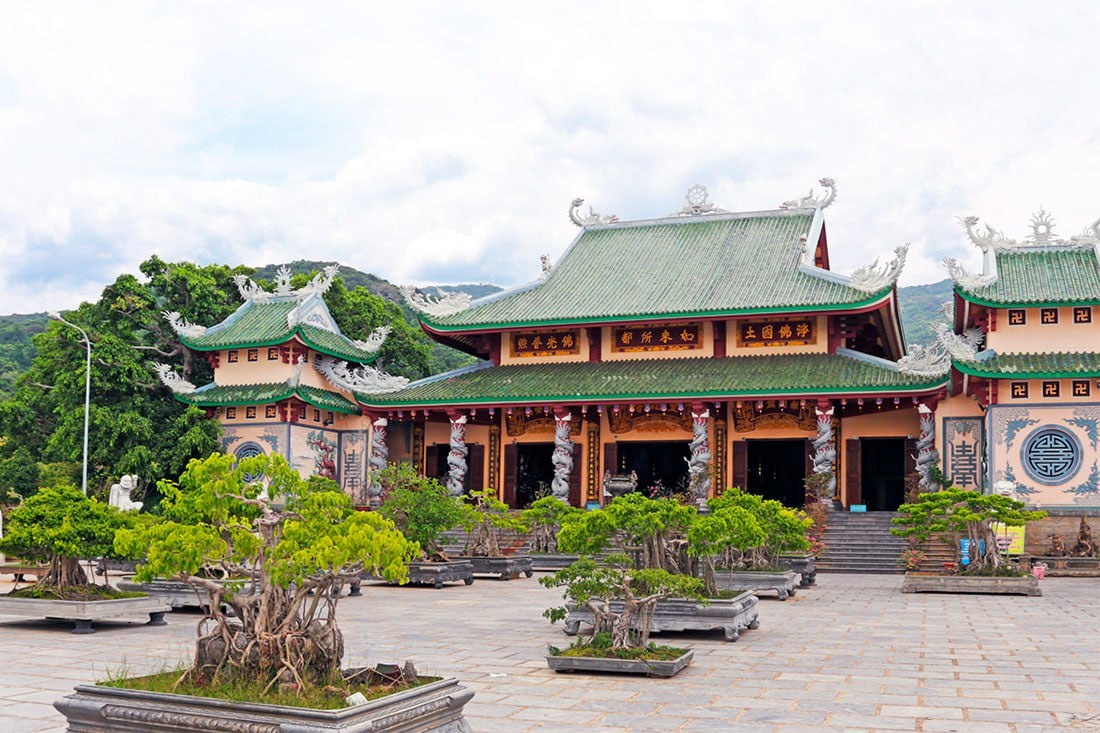 Двухэтажная пагода Пхап Лам находится неподалеку от центра Дананга – в тихом, уединенном месте среди пышных садов, где можно отдохнуть от городской суеты. Во внутреннем дворе храма установлены три больших изваяния – 1,1-метровая статуя сидящего Будды, а также статуи Богини Милосердия и Дай Чи Бодхисаттвы. На верхнем этаже вы увидите замысловатые резные столбы, священные буддийские рукописи и еще одну золотую статую Будды. Вокруг храма много закусочных на колесах и ресторанов, где продают вкуснейшие вегетарианские блюда. Проще говоря. Дананг