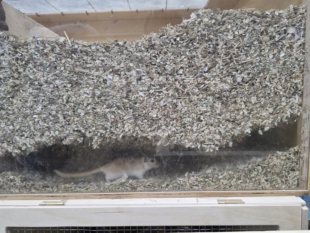 Норка песчанок на передержке у Екатерины Мурадян. Слой 35 см в витрине 120*60*60 см. Альбом с норками песчанок https://vk.com/album-206041176_288165598. Присылайте фотографии нор своих песчанок с указанием глубины слоя. Эти фотографии очень важны как пример для новичков-песчанководов❤️ ❗️Песчанки могут вырыть норку только если слой наполнителя в жилище больше минимальных 20 см в глубину. Хорошая глубина - 30+ см. Если слой слишком маленький, то норка не получится - наполнитель будет просто разлетаться при попытке её вырыть и осыпаться горами. Также для удержания нор в наполнитель стоит добавить большое количество сена - не горсточку, а столько же, сколько и опилок. Доля сена в наполнителе для удержания нор - не менее 50%. Если ваш слой больше 20 см, а наполнитель всё равно осыпается, положите дополнительную пачку сена в жилище.