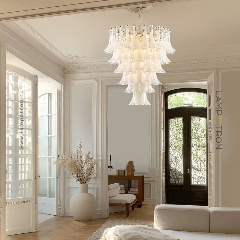 Люстры из серии LOBBY со стеклянными подвесками ручной работы в молочном оттенке