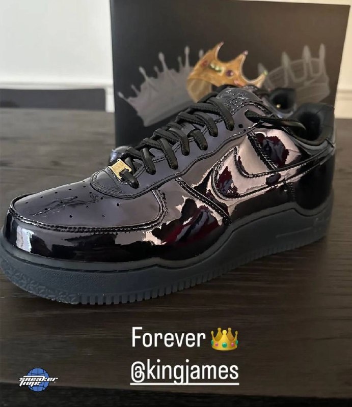 Первые фото LeBron James x Nike Air Force 1 «Black Patent» Пара с отсылкой на его новую моделью LeBron 23 Черный лак, золотые акценты и переработанная подошва с уникальным радиальным узором вместо привычных звёзд Даже коробка украшена фирменной короной 🗓Официальный релиз ожидается в декабре, цена — 200$ IT'S TIME FOR SNEAKERS Как вам пара? 🔥 — Чистый люкс ❤️ — Классика вне времени 👀 — Пропускаю