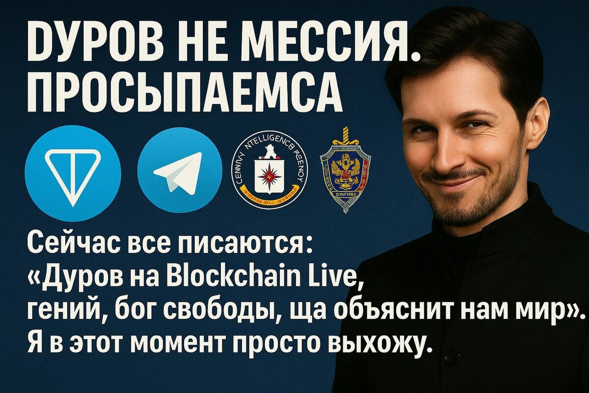 Дуров не мессия. Просыпаемся. Сейчас все писаются: “Дуров на Blockchain Live, гений, бог свободы, ща объяснит нам мир”. Я в этот момент просто выхожу. Я за последний год в нём очень жёстко разочаровался. Не эмоционально. По фактам. Первое. После Франции его внезапно начали выносить на Запад как своего. Вчера он был типа “дикарь против системы”, сегодня — “уважаемый гость”. Так не бывает просто так. Чтобы тебя так легализовали, ты должен стать удобным большим деньгам и структурам. То есть предсказуемым. Моё ощущение: он продал доступ. Продал людей. Продал аудиторию СНГ как актив — поведение, связи, базы. И после этого слышать от него “privacy, свобода слова, мы никому не подчиняемся” — для меня это уже просто сценарий удержания толпы. Это не правда, это NLP. Второе. TON. Весь этот цирк с тапалками, Ноткоином, “накликай себе богатство”, “успей зайти в новую экономику прямо сейчас” — это просто фабрика по загону хомяков. Завели толпу без опыта, наобещали иксы, дальше слили. Потом сдел
