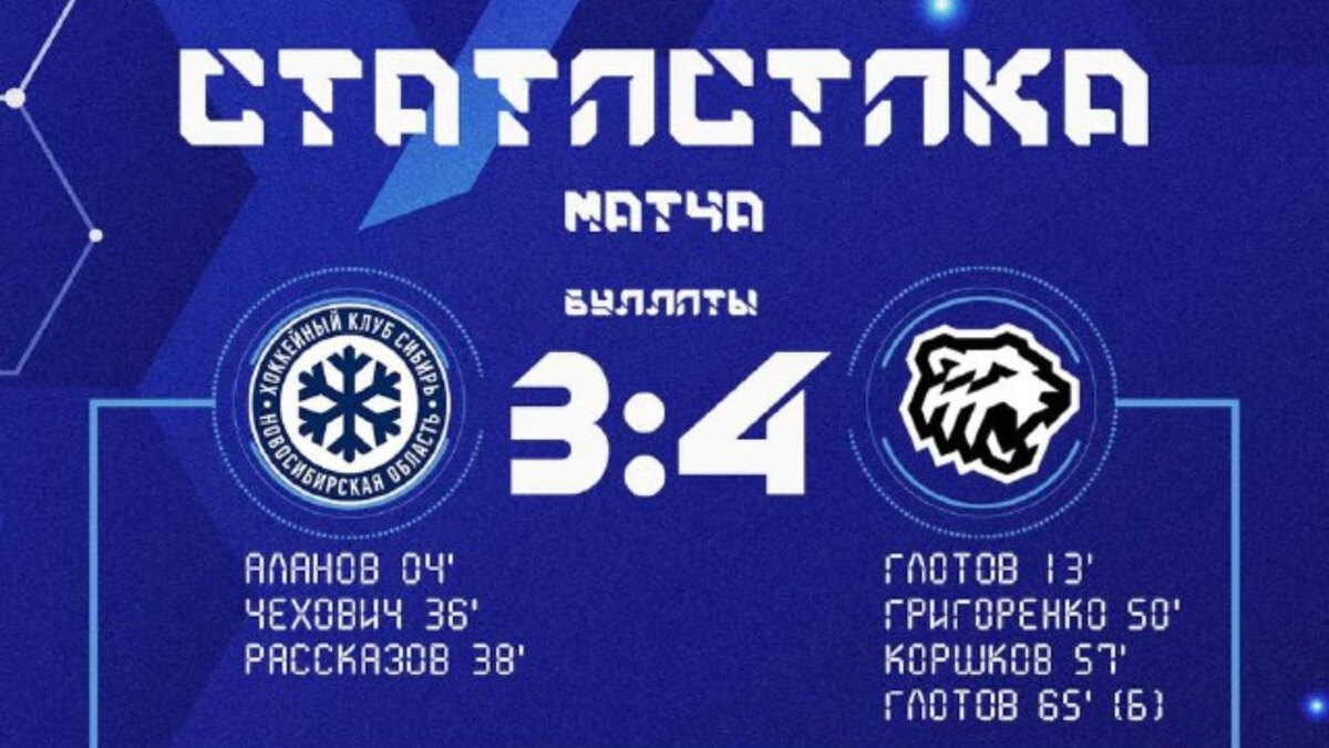 ХК «Сибирь» проиграл «Трактору» в серии буллитов