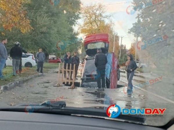В Первомайском районе Ростова легковушка провалилась под асфальт