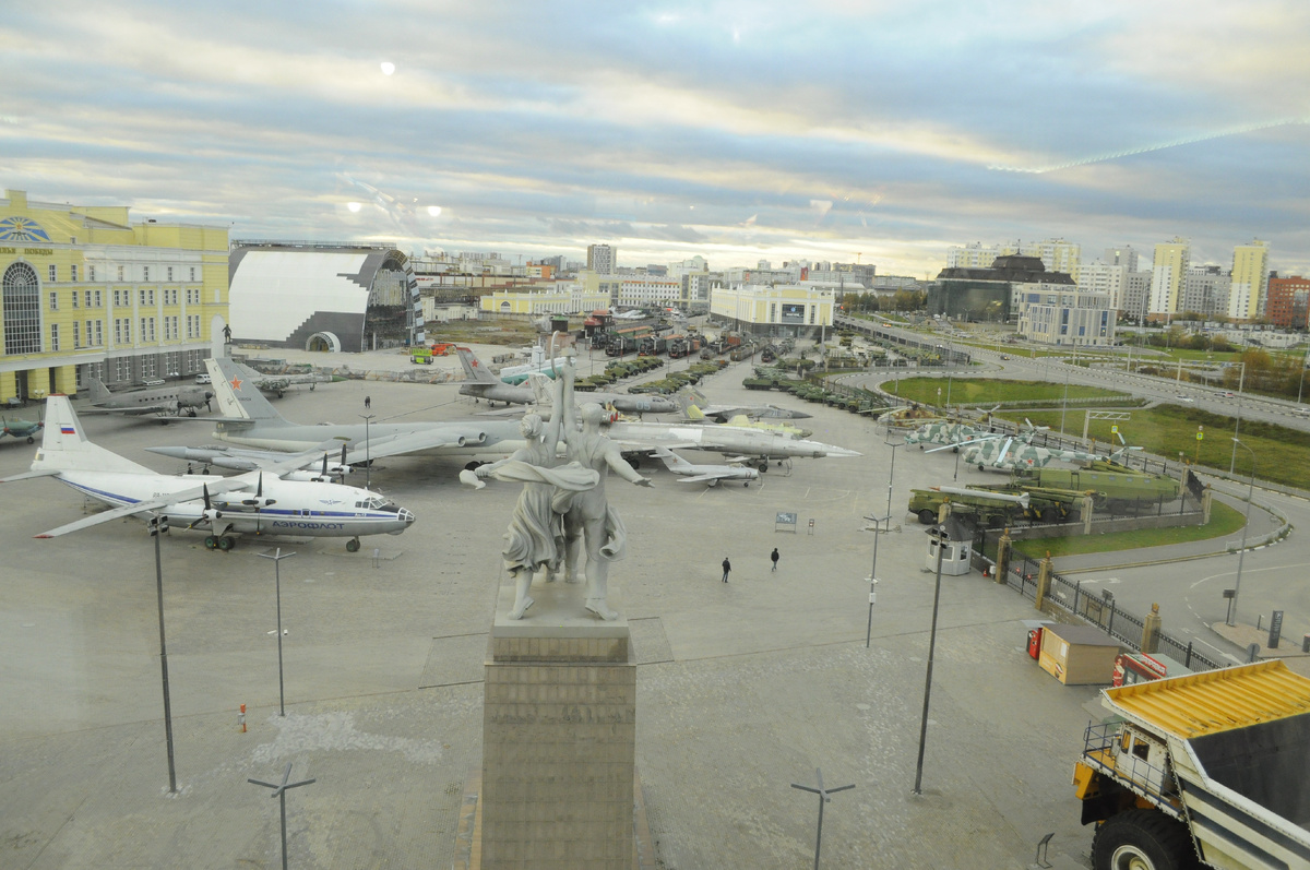 Сразу за ними открывается вид на площадку перед музеем «Крылья победы». Техника здесь стоит достаточно кучно, что немного затрудняет фотографирование.