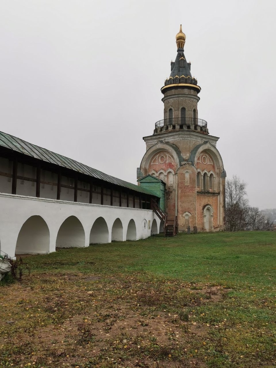 Помните, что я обещала, мол, поднимемся на колокольню? или на Свечную башню?.. Завораживают меня и название, и не яркий, но тёпло-восковой её цвет: В итоге выбрали колокольню и... не прогадали. Да, фотографии в кои-то веки не мои, а папины. Они с мамой ездили в Торжок и в Вышний Волочок в октябре 2025-ого, всё подробно задокументировали, зная, что я поклонница Тверской области. Пока это, наверное, мой любимый регион РФ (из тех, где я побывала... а побывала я точечно от Балтийска до Уссурийска, - как частенько шучу:) Итак... мы с вами находимся в одном из древнейших монастырей Руси - Борисоглебском: Не буду останавливаться на исторической справке, ибо мы с вами уже не раз бывали в Борисоглебском: О том, о чём все любят читать;) И совсем недавно мы здесь были: Вот, наконец посмотрим на Торжок с высоты птичьего полёта: Мне кажется, что морось ощущается даже, через экран. Когда я была юной и впечатлительной, то у Брэдбери меня, помню, впечатлило сравнение юной Клариссы, мол, осенние листь