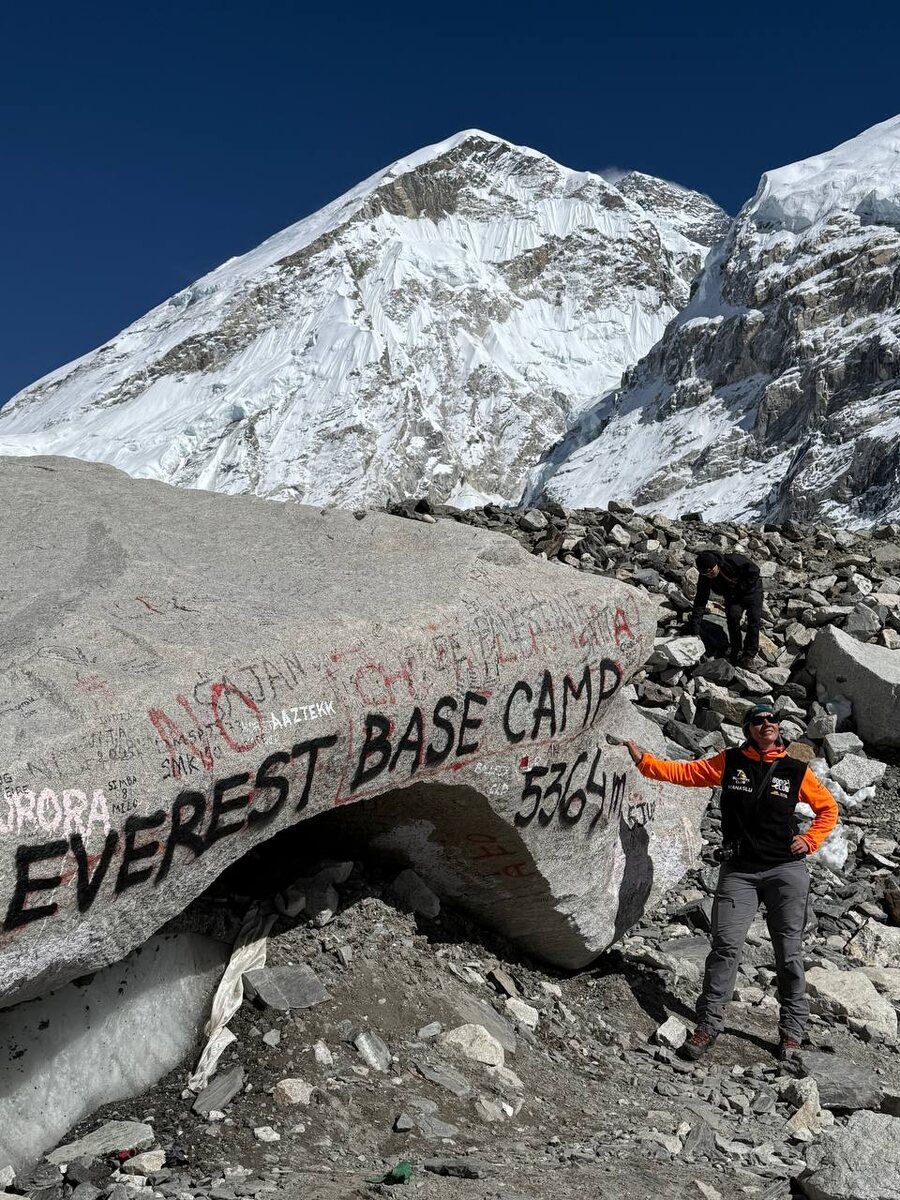 Два часа, три километра и вот уже показался заветный камень с надписью Everest Base Camp