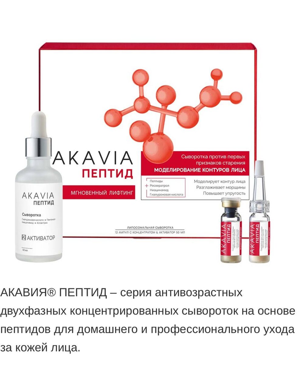 С этим производителем познакомилась 17 октября на выставке #Intercharm Понравился их подход к компонентам ухода. Революция в уходе: сыворотка, которая активируется перед применением! Это новинка — сыворотка-ревитализатор, которая не стареет на полке, потому что вы активируете её сами! 🧪 В чем магия? Два флакона: 1. Порошок: Мощные, но нестабильные компоненты (Витамин С, пептиды, ресвератрол) в сухой форме. 100% эффективности. 2. Активатор: Гель с гиалуроновой кислотой. Смешали — получили свежий, максимально активный продукт. Результат: ✅ Собственный коллаген: пептиды «будят» фибробласты. ✅ Защита и сияние: антиоксидантный щит против старения. ✅ Глубокое увлажнение: гиалуроновая кислота + ниацинамид. Идеально для: борьбы с первыми признаками старения, потерей тонуса, морщинами. Одной ампулы хватит на 2-3 применения. Храните готовую смесь в холодильнике до 3 дней! Это не просто уход — это наука для вашей молодости. ❤️ #антивозрастнойуход #косметология #пептиды #akavia