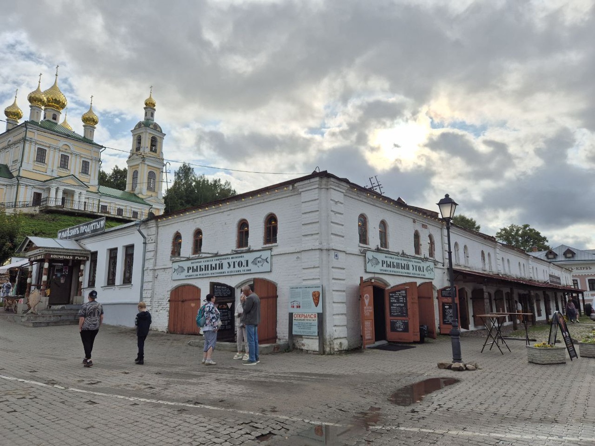 Рыбный угол N1 в Плёсе 📍Адрес: Плёс, ул.Советская, 41 ✨️Рейтинг на Яндекс.картах 5.0 Распиаренное место в Плёсе, здесь всегда много туристов, сейчас открыли ещё 2 точки, находятся рядом с первой точкой. Говорят, что рецепт пирожков-углов запатентован. Углы действительно вкусные, с разными начинками - наверно самая популярная начинка это копчёный лещ, а также ещё есть с форелью, осетриной, с яблоками, вишней (как раз эти и пробовала, все очень вкусные). В стаканчике можно купить уху - вкусная, густая, наваристая уха, прям топчик. Из напитков: много настроек (не пробовала), чай и с рябиной вкусный. Летние цены на фото. @KitttyLife #Плёс #путешествия #еда #кафе #Рыбныйугол #личноемнение #нереклама