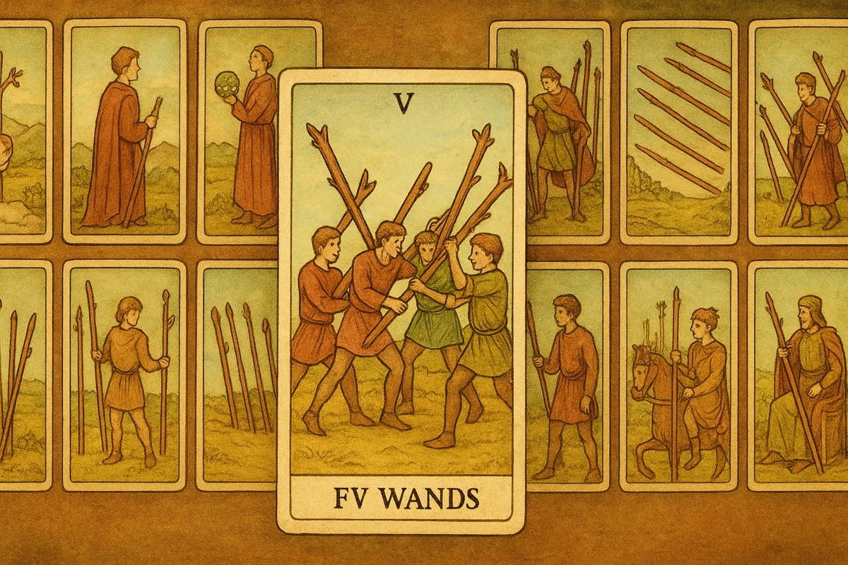 Первая часть: Пятёрка Жезлов в сочетании с другими Жезлами.