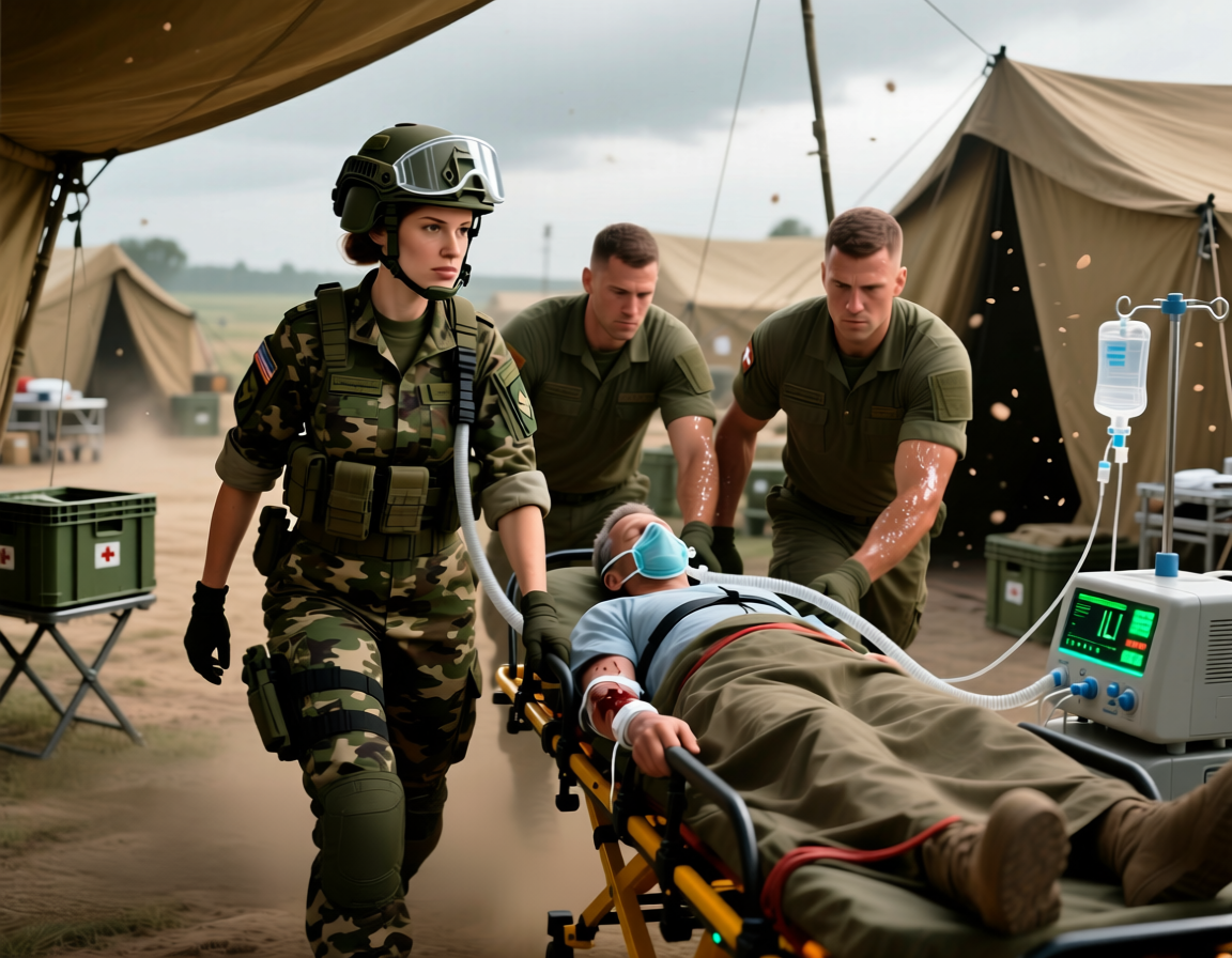 Полина дрожащими руками отстегнула ремни, попыталась приподнять носилки. Раненый был тяжёлым, как свинец, а её собственное тело от шока не слушалось. Тогда она кое-как подсунула под него армейское одеяло, ухватилась за края носилок и, упираясь ногами, потащила к выходу. Каждый метр давался с неимоверным трудом. Тупая боль в ушибленном при взрыве плече жгла огнём, дыхание сбивалось. Но медсестра упрямо двигалась, понимая: другого выхода у неё просто нет.