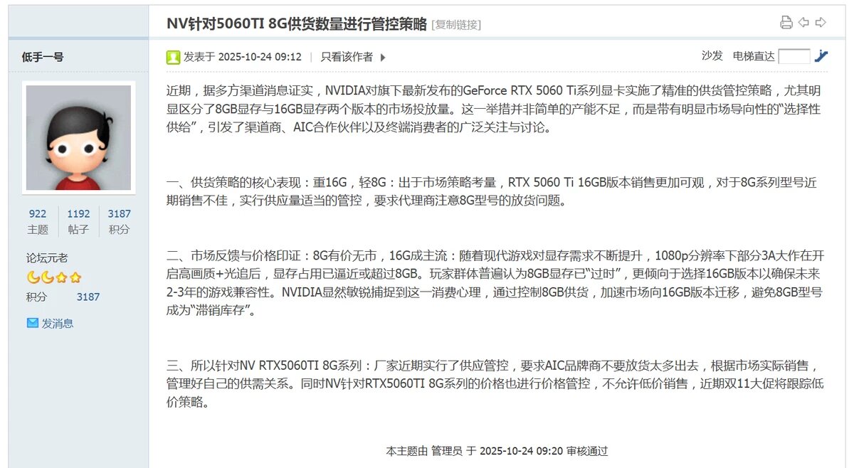 NVIDIA делает ставку на 16 ГБ: поставки 8-гигабайтных RTX 5060 Ti будут ограничены