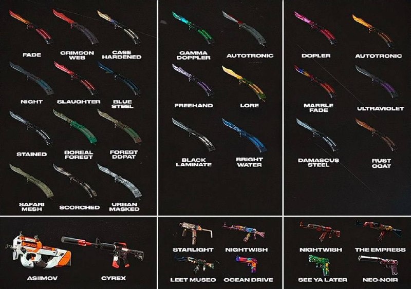 Появились гайды, позволяющие скрафтить нож-бабочку со 100% вероятностью. • Для крафта ножа-бабочки со скинами: «Градиент», «Убийство», «Кровавая паутина», «Закалка» вам потребуется одно из этих оружий: P90 | Азимов или M4A1-S | Сайрекс; • Для крафта ножа-бабочки со скинами: «Гамма-Доплер», «Автотроника», «Лор» потребуется одно из этих оружий: MP9 | Звёздный защитник, AK-47 | Пожелание на ночь, AK-47 | Музей элиты или Desert Eagle | Океанское побережье; • Для крафта ножа-бабочки со скинами: «Доплер», «Зуб тигра», «Мраморный градиент», «Ультрафиолет» потребуется одно из этих оружий: AK-47 | Кровавый спорт, AK-47 | Императрица, P250 | Прощальный оскал или USP-S | Неонуар. Сохраняем и крафтим. CtrlAltDelights- подписаться
