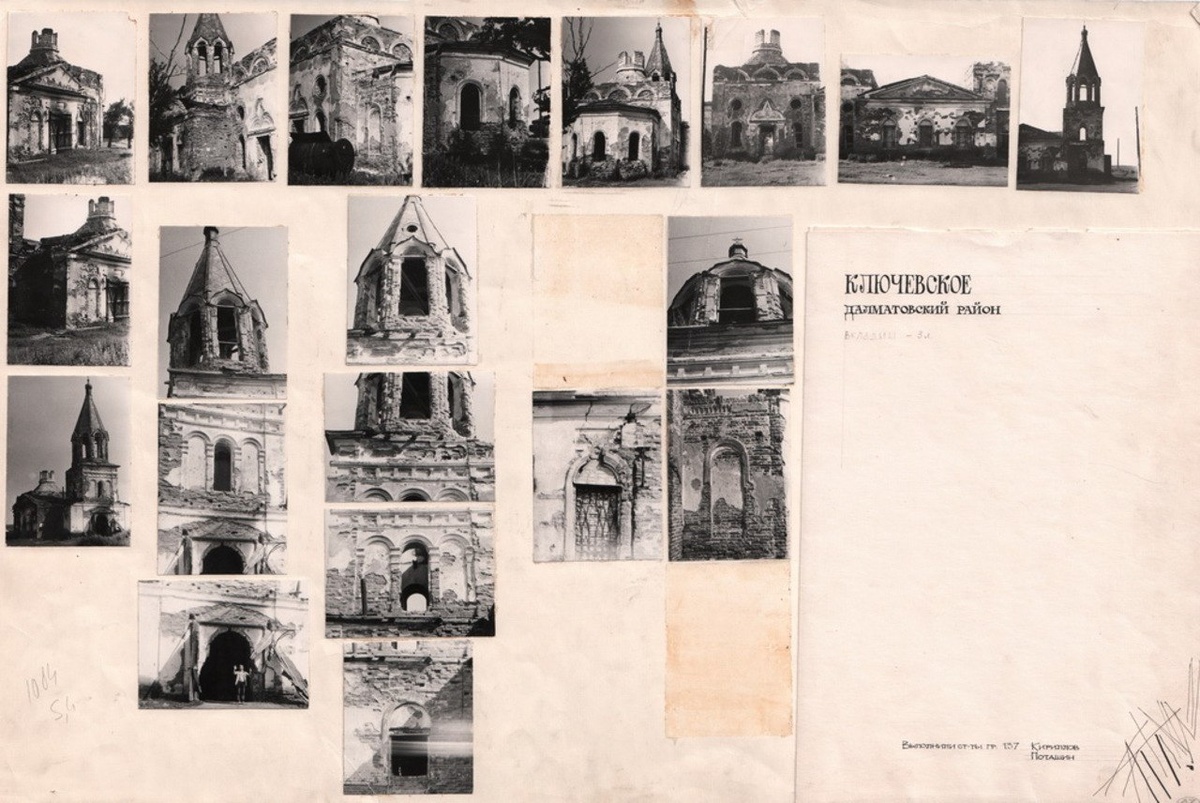 По притокам реки Исеть (Церкви). Материалы обмерной практики. Лист 17. Церковь с. Ключевское. Фотографии | 1980 г. Обмерочная практика. По притокам Исети. Выполнили студенты САИ гр. 137: М. Бояркина, М. Коржавина, С. Кириллов, С. Поташин, В. Халитов, Ю.М. Хренова. Руководитель Н.И. Бугаева. Свердловск, 1980 г. Источник: Музей архитектуры и дизайна Федерального государственного бюджетного образовательного учреждения высшего образования "Уральский государственный архитектурно-художественный университет имени Н.С. Алфёрова" https://vk.cc/cQGTXu