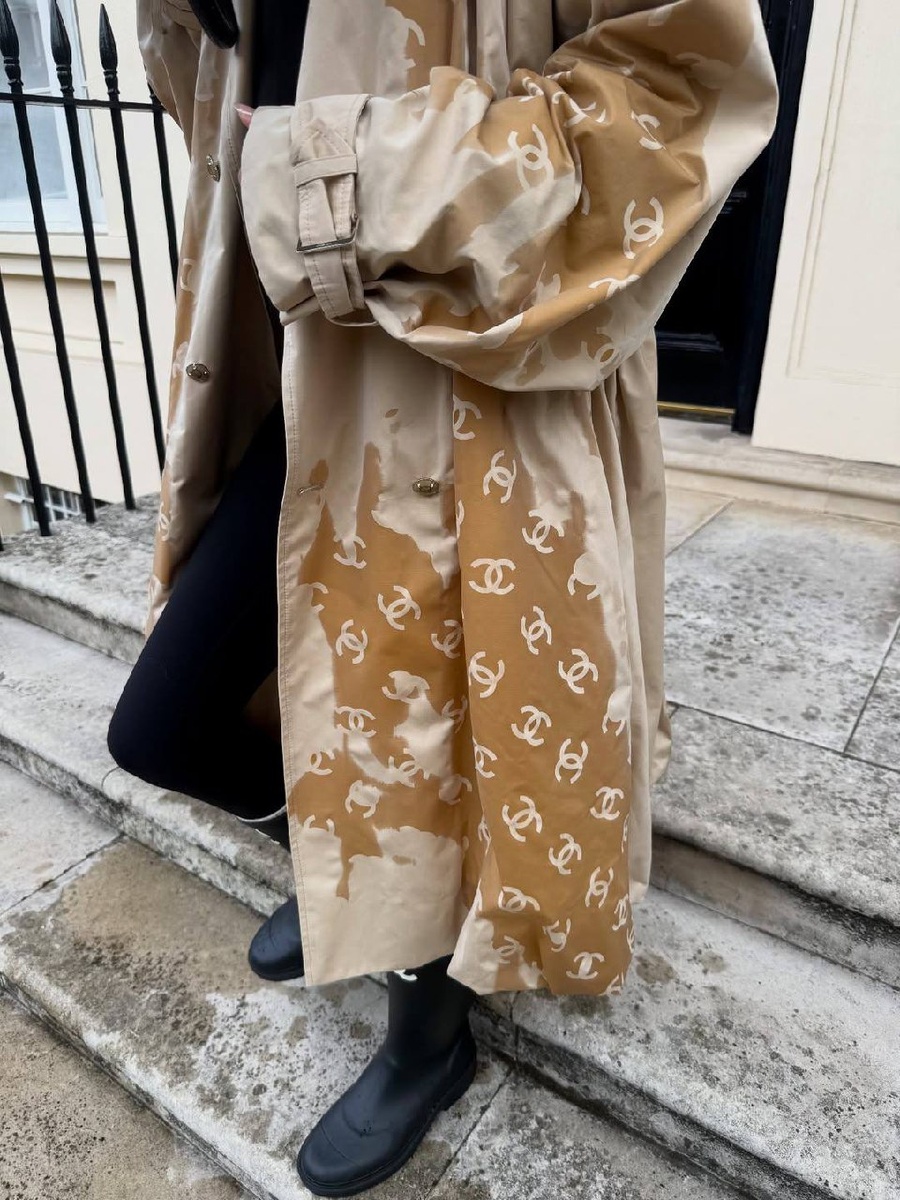 Дождь больше никогда не сможет испортить вам аутфит — только украсит. Новый тренч Chanel Coco Girl 25B выявляет рисунок из фирменного лого на ткани, когда ее поверхность намокает.