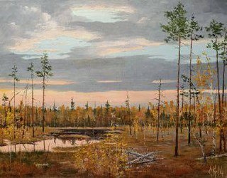 Скромные, но по-своему красивые, пейзажи Коми от художника Сергея Кутькина.