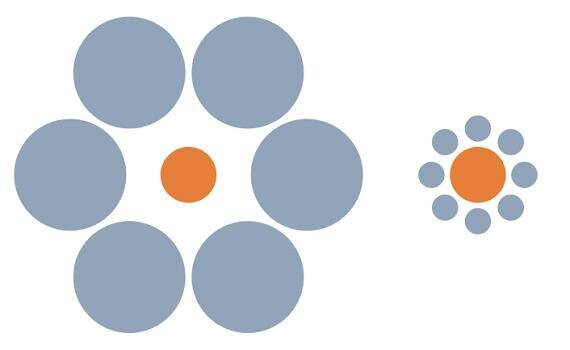 Иллюзия Эббингауза 🤔 Иллюзия Эббингауза (или иллюзия Титченера) — это оптическая иллюзия восприятия размера, открытая немецким психологом Германом Эббингаузом. ❓ Суть иллюзии: Два одинаковых по размеру круга кажутся разными: Круг, окружённый большими кругами, выглядит меньше Круг, окружённый маленькими кругами, выглядит больше ⏳ Причина: Мозг оценивает размер объекта не изолированно, а в сравнении с окружающим контекстом. Это явление называется относительным восприятием размера. Эта иллюзия показывает, насколько наше восприятие может отличаться от объективной реальности.