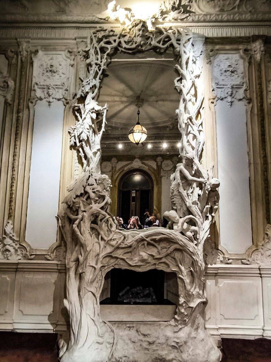 🖇Камин в усадьбе Салтыковых-Чертковых на Мясницкой улице 🔵Камин был создан в 1897 году по проекту Михаила Александровича Врубеля. 🔵Герои греческой мифологии Сатир и нимфа окутаны ветвями деревьев и смотрят друг на друга через разделяющее их зеркало, а на потолке «летают» амуры. 🔵Камин со всех сторон выглядит по-разному, рассматривать его детали можно очень долго. Кстати, этот камин вы могли видеть в фильме «Семнадцать мгновений весны». 📸 lesinkha Московские истории 🎞️ Лучшие места и истории 👈🏻