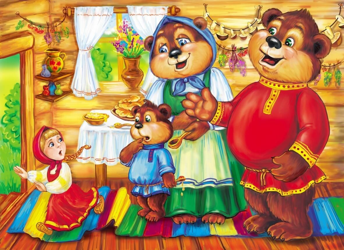 Эту детскую сказку, порой ещё называют - "три медведя”. Она является изначально народной, кажется даже - имеющей английские корни. Мы её с раннего детства знаем по адаптированным несколькими авторами вариантам. Эта адаптация, ни в коей мере не мешает ей быть откровенно космогонической. Думаю, ты хорошо её помнишь и сам уже теперь всё понимаешь.