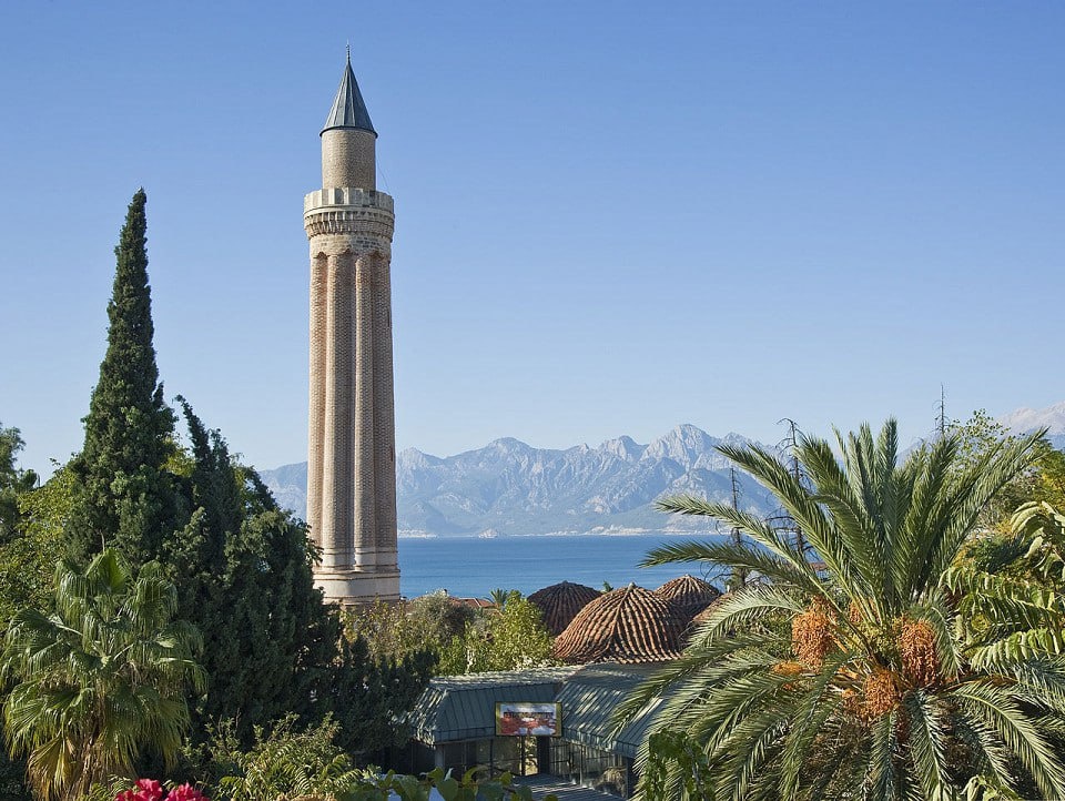 Минарет Йивли Этот минарет в 13 веке построил сельджукский султан Ала-ад-дин Кей-Кубад. Строение высотой 38 метров появилось по двум причинам. Во-первых, отсюда муэдзин призывал правоверных к намазу. Во-вторых, минарет был символом побед султана, которые завоевал прибрежные земли. Минарет имеет необычную, складчатую, форму, немного напоминающую кожу шарпея. Издалека кажется, будто здание разрезано на полуцилиндры. Йивли состоит из восьми частей, каждая из которых украшена кирпично-изразцовой мозаикой. Рядом с минаретом находится мечеть. Минарет можно увидеть практически из любой точки города. Внутри нее — 90 ступеней винтовой лестницы, которая ведет на балкон. Они освещены через прорези в стене. Ученые считают, что раньше здесь было 99 ступеней — по числу «прекраснейших имен» Аллаха, которые муэдзин должен повторять, поднимаясь наверх. Правда, куда исчезли 9 ступеней, никому неизвестно. И как к этому относятся муэдзины — тоже. Проще говоря. Турция