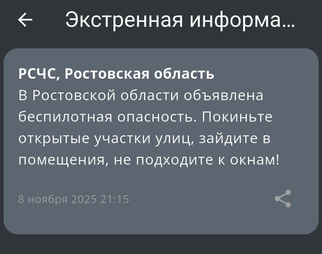 ❗В Ростовской области объявлена беспилотная опасность 8 ноября❗