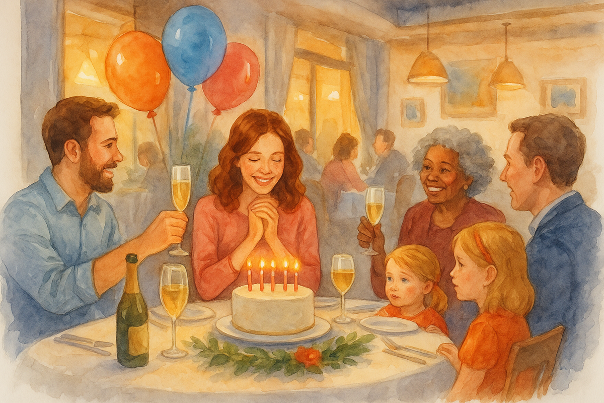 В результате именинник проводит праздник на ногах — и отдыхает меньше всех. Ресторан решает эту проблему: