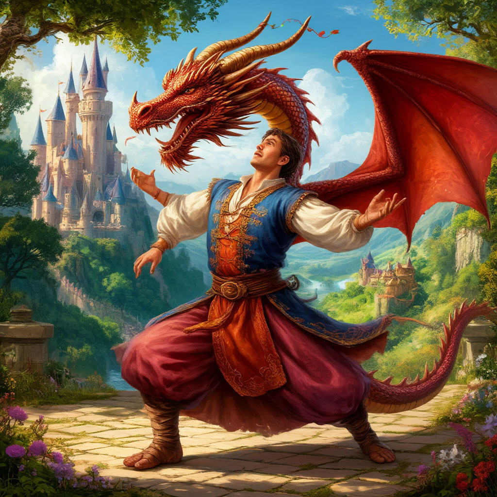 В одной китайской деревне жил парень, которого звали Шэнь Ли. В деревне, где он жил, каждый год проводился конкурс талантов, и Шэнь ли мечтал выиграть в нем хоть раз. Но хотя талант у него был – Шэнь Ли любил и умел танцевать – Шэнь Ли знал, что в его деревне много людей, которые танцуют гораздо лучше чем он. Шэнь Ли готовился к конкурсу целыми днями, но их лучшие танцоры все равно только посмеивались над ним. - Как же ты будешь танцевать, если ты такой неуклюжий? - Ты же путаешься в своих ногах, даже когда просто ходишь! – часто говорили они. И хотя Шэнь Ли был очень упрямым, изменить это он не мог, сколько ни старался. И конечно, из-за этого он очень переживал. Как – то он шел по лесу и думал об этом. - До конкурса осталось всего три дня, а у меня ничего не двигается с места! – сокрушался он. И вдруг Шэнь Ли увидел, что над лесом пролетела какая-то странная тень. - Кто это? – невольно подумал он – на птицу не похоже… Долго гадать, кто это, ему не пришлось – через минуту совсем ряд