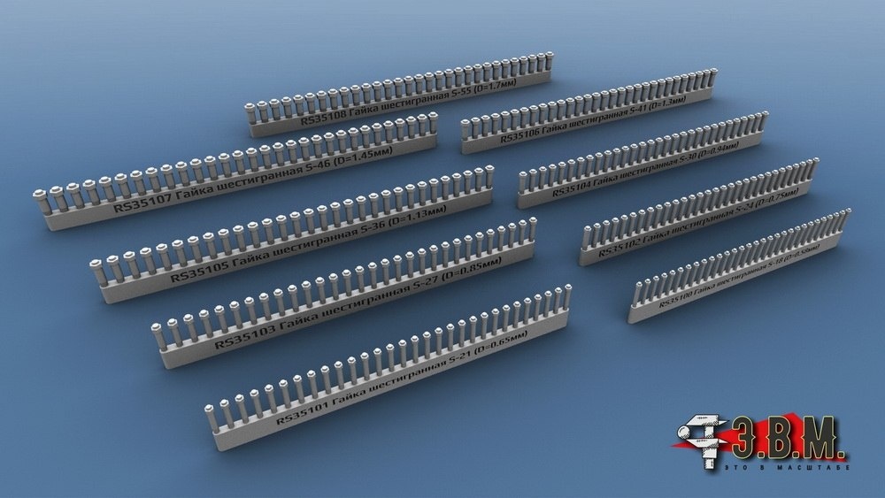 Э.В.М. из Севастополя выпустит на 3D-принтере наборы шестигранных гаек: 9 наборов гаек диаметрами от 0,58 до 1,17 мм. В наборе 210 гаек.