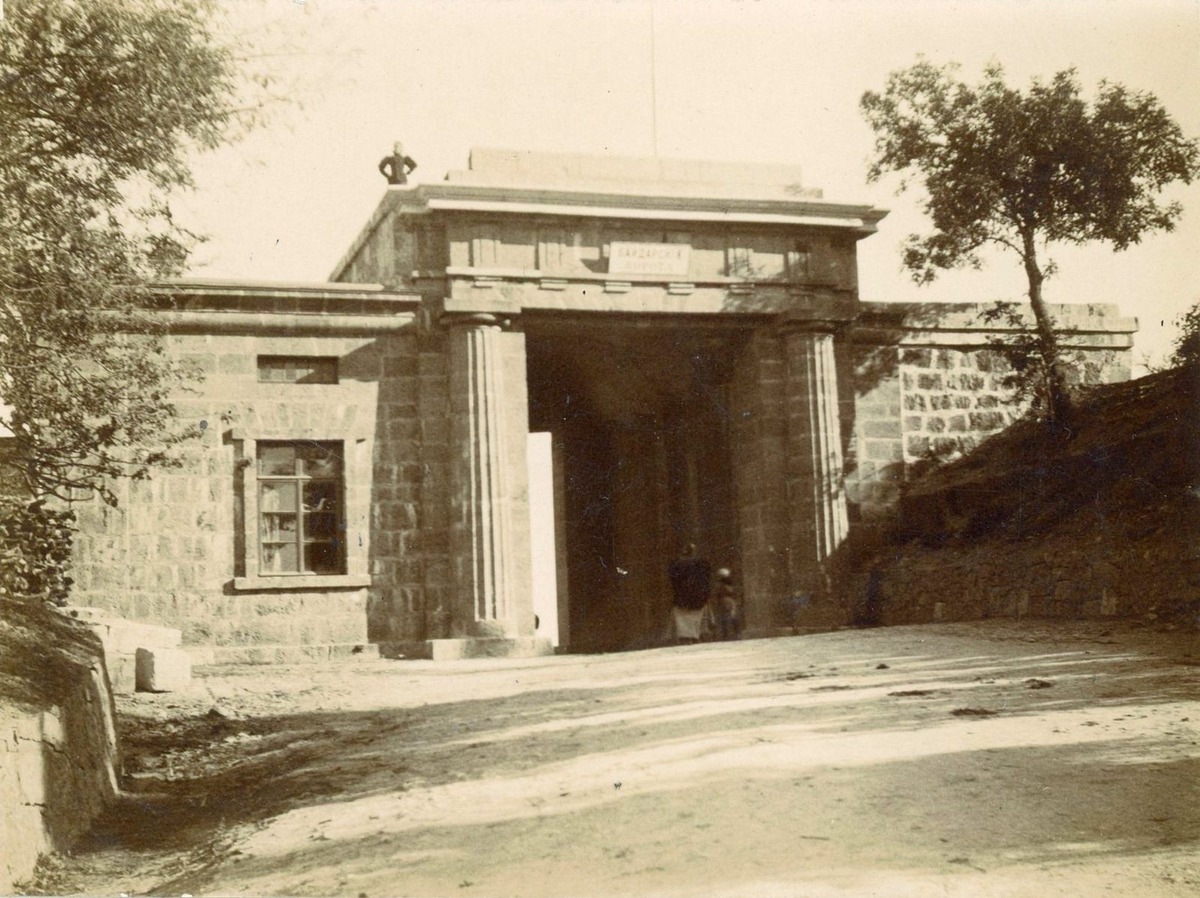 Во время войны он был взорван, но память о нём жива — в старых открытках, где рядом с тёмным входом в туннель виден храм на Красной скале.