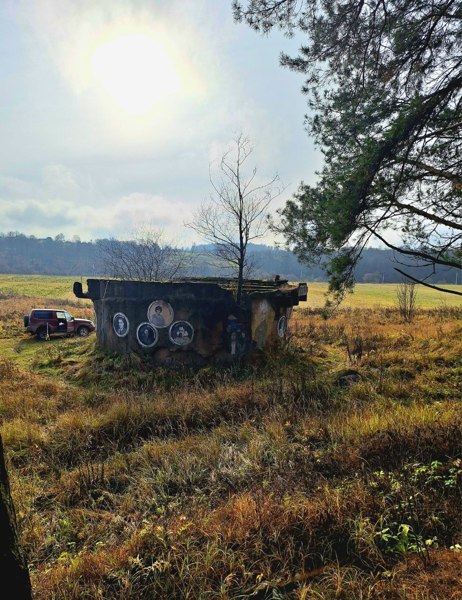 Наверное самый необычный арт-объект, который я видел в жизни, это Ковчег или НЛО в Боровске. Одна из самых удалённых от центра работ художника - «Ковчег», расположенный на противоположном берегу реки, на дорожке от пешеходного моста через Протву до посёлка Институт. Художник украсил полуразрушенную водозаборную будку, превратив её в нечто необычное. Расписанный бетонный бункер посреди чистого поля на краю леса действительно напоминает НЛО. Обойдите вокруг этой необычной конструкции. В её “иллюминаторах” вы увидите множество знакомых персонажей. Здесь собраны космонавты, писатели, философы и актеры, имеющие отношение к космосу – по мнению художника. Удивительно, но список имен вызывает интерес.
