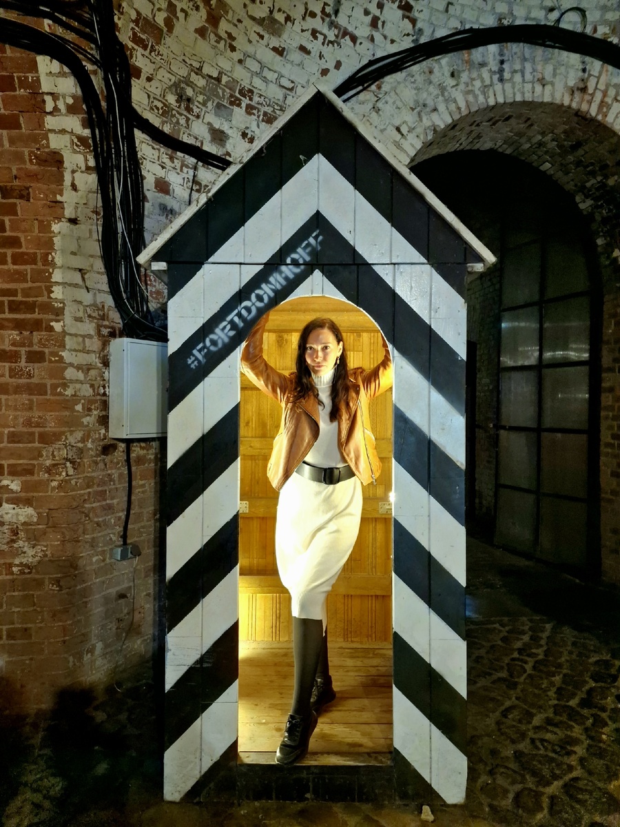 Часть помещений пустует и выглядит пугающе, учитывая историю этого места. Мы нашли комнату совершенно без освещения. Было непонятно, можно ли туда заходить? Включили фонарики и пошли вглубь, а там оказалась винтовая лестница, ведущая вниз, под землю. Рисковать не стали 😀 Мне всё казалось, что пол под нами сейчас провалится🤭 Вот такие внезапные ощущения возникли в кромешной темноте в полуподвальном помещении. Так что следите за детьми, тут может быть небезопасно.