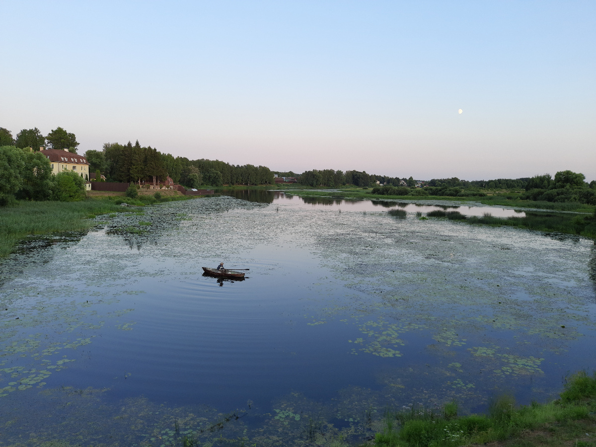 Солнце близится к закату, на воде полный штиль. Сегодня прекрасный вечер для созерцания. Делаем остановку у старой солеварни. Серега остается следит за вещами, а я бегу в продуктовую лавку, попутно не забыв заскочить в «Баварский бочонок». Время уже десятый час, запрыгиваем в байду, отплываем на километр, есть уютные полянки, но я уговариваю Серегу выйти из устья. И зря, потом я об этом пожалею. Спустя полчаса всматриваемся в сумеречный берег в попытке найти подходящее место для чалки. Везде людно. Наступает 10 часов вечера — наконец-то чалимся. Прошли в этот день 27 км.