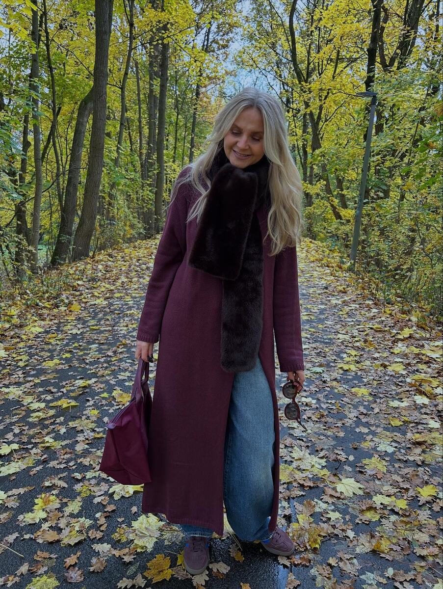Российские модницы старше 45 лет умеют создавать образы, которые сочетают в себе практичность, комфорт и безупречный вкус. Сегодня рассмотрим 10 вдохновляющих комплектов, которые помогут вам встретить прохладные дни во всеоружии. Пальто макси в оттенке бургунди – это беспроигрышный вариант для осеннего гардероба. Глубокий, насыщенный цвет бургунди придает образу благородство и изысканность, а длина макси добавляет элегантности. Для расслабленного образа под такое пальто идеально подойдут джинсы и кроссовки. Меховой шарфик не только прекрасно согревает в холодную погоду, но и добавляет образу роскоши и игривости. Брюки болотного цвета создают основу образа, напоминая о природных красках. В пару к ним – бордовое пальто макси, которое создает богатую и интересную цветовую палитру. Коричневые угги - идеальный выбор для осенних прогулок. Сумка-шопер – практичное решение для тех, кто ценит функциональность и вместительность. Макси пальто бежевого цвета прекрасно контрастирует с брючны