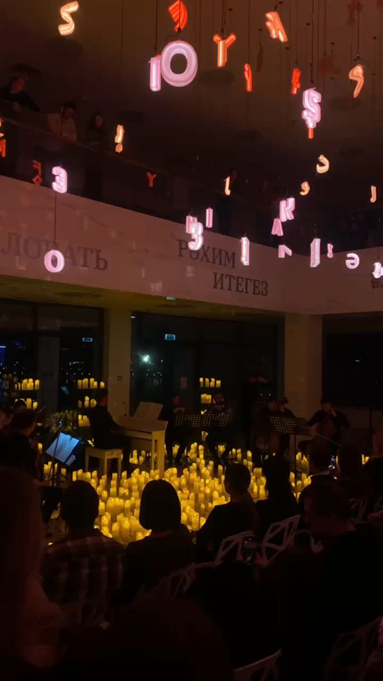 Последний луч света гаснет и зал Национальной библиотеки погружается во тьму. Наступает полная тишина – трепетная, наполненная предвкушением. Музыканты занимают свои позиции. В эту минуту рождается первый звук. Так начинается не просто концерт, а уникальный «опыт» - вечер музыки итальянского композитора и пианиста Людовика Эйнауди при свечах. Огни от свечей, которые сегодня будут душой вечера, отражаются в глазах зрителей. Свисающие с потолка светящиеся буквы из алфавитов разных языков задают атмосферу в зале. Мы все совершенно разные, но нас объединяет одно – любовь к музыке. Переливание свечей дышит в такт звучащей мелодии. Музыканты настолько близко находятся к зрителям, что грань между публикой и исполнителями исчезает. В зале есть сидячие места, приготовленные для уютного погружения и наслаждения. Однако представлены билеты и без фиксированного места для тех, кто хочет перемещаться по залу во время концерта. Игра музыкантов поражает. Работа каждого складывается в общую мелодию. Сл