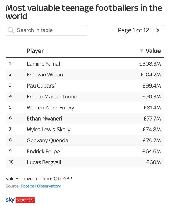 Эстевао Виллиан из "Челси", Итан Нванери с Майлсом Льюис-Скелли из "Арсенала" и Лукас Бергвалл из "Тоттенхэма" были названы в топ-10 самых дорогих тинейджеров в футболе по версии CIES 📊