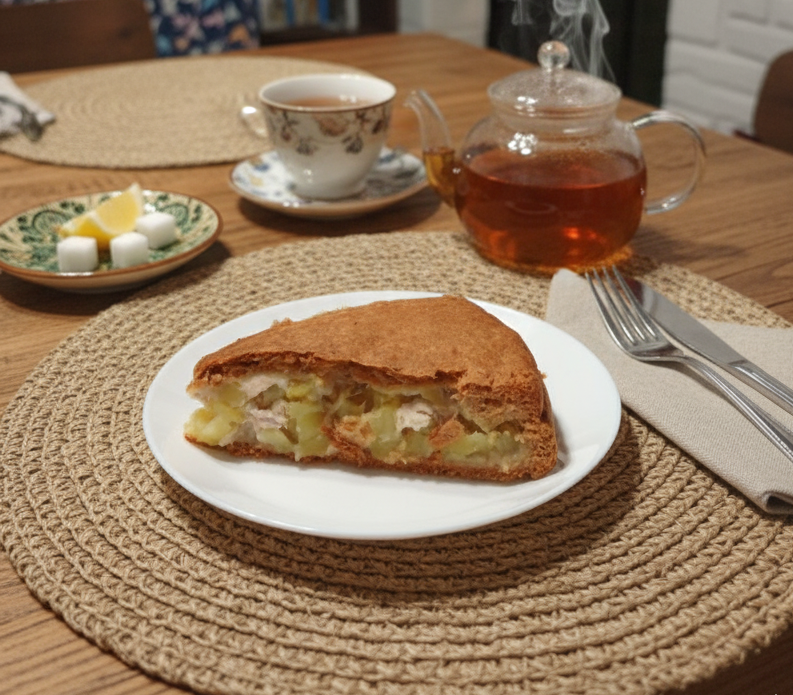 Привет всем! 😊 У нас в семье с недавних пор, а точнее с того времени, как сын полюбил этот пирог, курник называется "курятником". Он его так прозвал, не мог запомнить, что "курник", а мне понравилось — оттуда и пошло. И так как этот пирог у него теперь одно из самых любимых блюд, я частенько его пеку, чтобы порадовать. Вот и сегодня, в конце первой насыщенной учебной недели после каникул, решила испечь на ужин именно его. Делюсь с вами этим простым и очень вкусным рецептом! Тесто на кефире и мягком сливочном масле получается невероятно нежным и рассыпчатым. Для теста: Для начинки: Для смазывания: Лайфхак: Через 30–40 минут после начала выпекания, через отверстие в центре можно влить немного бульона или просто воды, чтобы начинка была гарантированно сочной. Даем пирогу немного "успокоиться" после духовки и подаем "Курятник"! Он отлично сочетается с легким салатом из свежих овощей или просто с чашкой ароматного чая. Пирог сытный и самодостаточный, поэтому не требует сложного гарнира. На